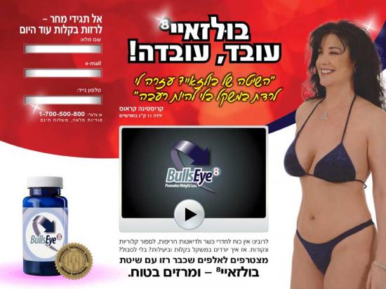 קופי: בולזאי עובד, עובדה! קונספט: עיצוב המכוון למילוי פרטים או יצירת קשר טלפוני, הצגת המוצר כמוצר יעיל המביא לתוצאות. סרטון עדויות המראה אנשים שהצליחו לרזות.